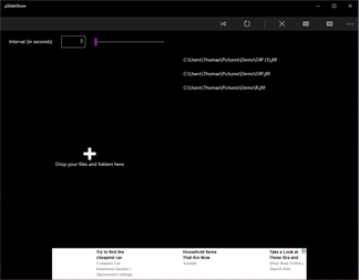 After opening the application, just drag and drop however many images and folders in the dedicated area. It will then list all the displayable items you dropped. If you drop any folders, it will automatically find all the pictures contained in them and in any of the inner subfolder.