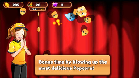 Characteristics: - 60 amazing levels - Serving many rare and fun customers - Many snacks to sell: hot dogs, pop corn, hamburgers and more. - Earn money and gems to improve the machines and also buy new ones. - Customizable items to give the cinema the look you want. - Unlimited hours of fun