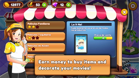 CUSTOMIZE YOUR CINEMA Earn money to buy items and decorate your movies any way you like!!