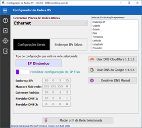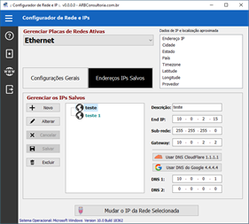 Configurar e salvar seus endereços ips da rede e para trocar facilmente seu dns para dns público mais rápido.