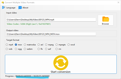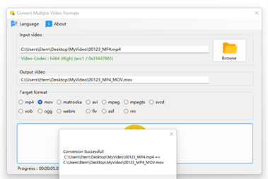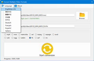 ===================== Convert to the following video formats: mp4, mov, mkv, avi, mpeg, ts, vcd, dvd, ogg, webm, flv, asf, rm