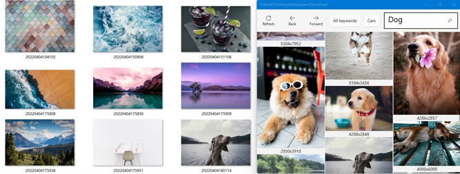 Support image search, each search only lists 9 images, you can view more images through the previous page and the next page.