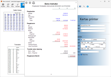 Dapat diakses dari halaman Proyeksi adalah dialog Hari. Dialog komprehensif praktis yang menunjukkan perincian semua transaksi yang jatuh tempo pada hari itu bersama dengan total Rekening dan suku bunganya. Dialog Hari adalah cara lain untuk memperbarui angka yang disajikan dalam halaman Proyeksi.