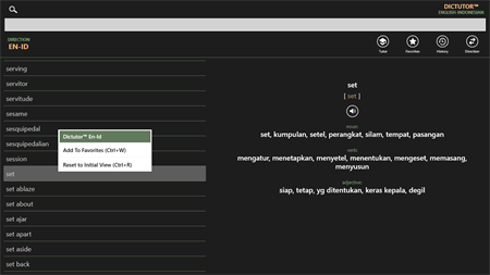 Dictutor EN-ID ini merupakan paket kamus Inggris-Indonesia dan Indonesia-Inggris yang mengesankan dengan tutor elektronik untuk pengguna berbahasa Indonesia. Aplikasi ini merupakan alat yang luar biasa untuk menguasai bahasa Inggris. Dictutor memungkinkan Anda menerjemahkan secara instan dan mempelajari kata-kata asing yang baru dengan efektif.