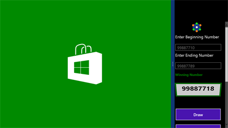 This program was designed to pick door prize and raffle type drawings. It is fairly simple and to the point. There is a 1,000 span limit to keep the app fast and fluid! Enter beginning and ending numbers in the appropriate boxes, just the beginning number will be included in the drawing. It will pick random numbers until there are no more in the pool. Enjoy!