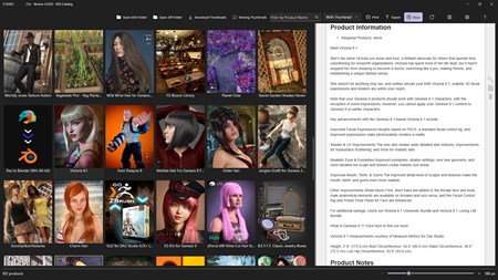 - Catalog DAZ 3D content - Thumbnails and metadata download from the cloud (web-browser functionality, requires an internet connection, no account required) - Advanced thumbnails management (Search, Delete, Automatic/Manual Download) - Metadata management - Customizable catalog print - PDF export - Embedded products documentation (web-browser functionality, requires an internet connection) - Multiple sorting options - Categories and Artists filtering - Compatible with externally archived content - Batch thumbnails resizing for faster load times - System Light / Dark theme UI - Free lifetime updates and much more! - NEW: Exe content support