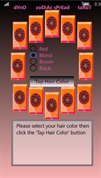 This app also added the significator selection to pick a card representation of your self, or if you want to read for someone else. The hair color defines the choice, but if you prefer, wands (Red) represent fire signs in the zodiac (Aries, Leo, Sagittarius). Cups (Blond) represent water signs in the zodiac (Pisces, Cancer, Scorpio). Swords (Brown) represent air signs in the zodiac (Libra, Aquarius, Gemini). Finally, Pentacles or coins (Black) represent earth signs in the zodiac (Taurus, Virgo, Capricorn). Both Hair color or zodiac methodologies are widely practiced in the Tarot. Generally, why is the hair color more so used? Because of the simple fact of etiquette. It is not polite to ask for birth dates from a client (privacy), nor is it proper to ask an acquaintance's astrological sign. The reader must cast an ambience of mystique and knowledge.