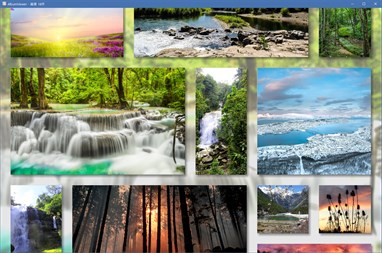 指定したフォルダ以下の画像をまとめて表示することができ、様々なレイアウトで画像を並べてアルバムのような感覚で見ることができます。 特定のフォルダの画像をミックスしたり、レイアウトも自分で追加することもできるので、オリジナルの壁紙等を手軽に作ることも可能です。