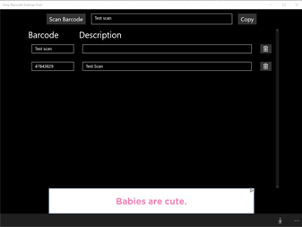 Usage: - Press the scan barcode button at the top - Place barcode in front of your camera - Barcode will be scanned automatically
