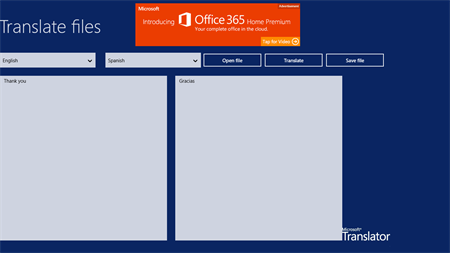 File Translator provides an easy way to translate texts and files txt in several languages. Also, integrates perfectly with the Windows platform since it has the possibility of sharing the translated text and send to the application text to translate.