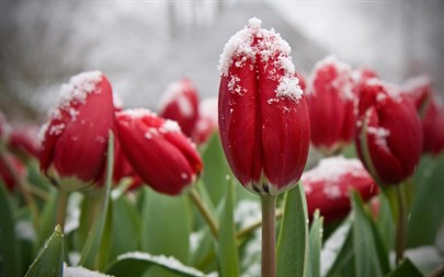 Delight in the contrast of the sparkle of snow on springtime buds and blossoms in this free, 12 image Windows 10 theme. These images are to be used as Desktop Wallpaper only.