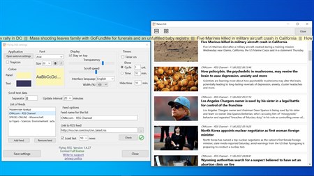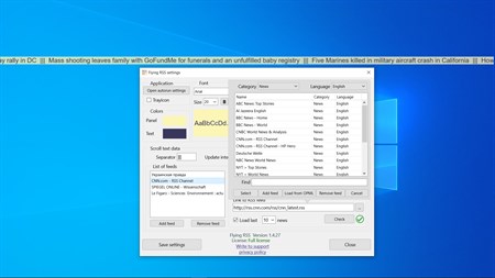After the first launch, right-click on the scrolling line and go to the “Settings” menu. You can configure the output options of the scrolling line and enter a link to the RSS feed, or select a feed from the list by clicking the "..." button.