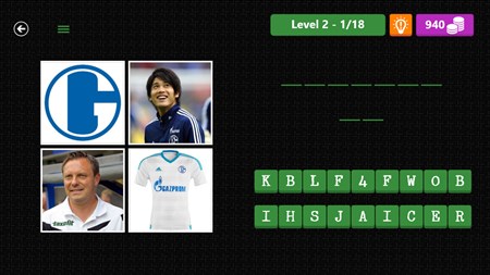 Football Quiz Soccer is a game where your goal is to guess the name of the football (soccer) team based on four pictures. Each picture can be the team badge, the manager, a player and team jersey.