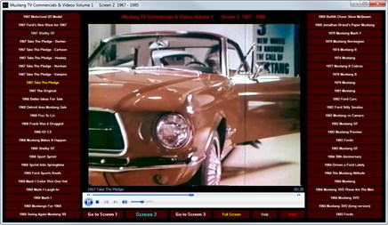 Mustang TV Commercials Volume 1 is a presentation of 150 TV commercials & videos produced by Ford to market the "pony car" to the world. The incredible advertising campaign introduced the Mustang on April 17, 1964 at the New York World's Fair, as a "1964½" model. The Mustang was the automaker's most successful launch since the Model A. Mustang is Ford's third oldest nameplate in production and has undergone several transformations to its current 2014 model, the fifth generation. This collection includes the early commercials that were simple, informative and funny and many later editions that document the evolution of the first "pony car" from a spirited economy car to the current world class Boss 302 and Shelby GT500 supercars.