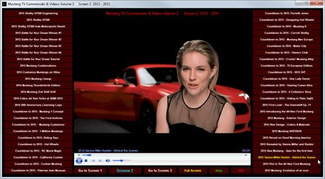 Mustang TV Commercials Volume 2 is a presentation of 150 more TV commercials & videos produced by Ford to market the "pony car" to the world. The incredible advertising campaign introduced the Mustang on April 17, 1964 at the New York World's Fair, as a "1964½" model. The Mustang was the automaker's most successful launch since the Model A. Mustang is Ford's third oldest nameplate in production and has undergone several transformations to its current 2015 model, the fifth generation. This collection includes the Ford commercials and documentary videos that herald the latest world class Mustangs starting in 2010 and continuing to the current Boss 302 and Shelby GT500 supercars. Also included in this set are 22 independently produced Mustang "Story" videos that are creative, funny and informative.