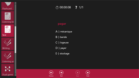 Much more than a dictionary. Dictionary, translator, test, flashcard, listen test, writing, dual game and more... Save time and money while learning the language with this application.