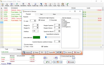 Dopo aver registrato mese per mese i movimenti, l'App consente di avere un quadro riepilogativo relativamente ai movimenti effettuati sotto forma tabellare e in forma grafica, per ogni conto, ⦁ il bilancio (annuale o per un intervallo temporale definito dall'utente), ⦁ i saldi mensili ⦁ i saldi totali (per un intervallo temporale definito dall'utente).