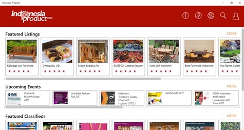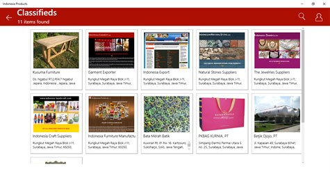 This application is the directory of Indonesia products, including furniture, craft, garment, jewelry, stones, paper products, rubber, glass, plastic, industries, and many more products. This mobile app is the reflection of the main web: www.indonesia-product.com. The function of this application is to make easy foreigner or local company in search kind of souvenirs shop, souvenirs center, batik shop, and many more.