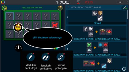 ???? dan dimana logika? ???? gim memberi Anda petunjuk-petunjuk logis, sehingga Anda bisa menyimpulkan simbol apa yang masuk dalam kotak apa