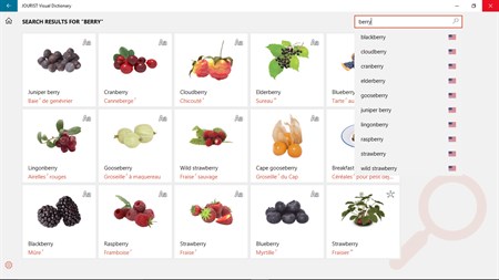 The Visual Dictionary is suitable for all language levels. Have you ever wondered what a pitaya looks like and how it will be named in Spanisch, Italian or German? This Visual Dictionary can help you solve these dilemmas and many others like them. Inside the app, you will find over 4,500 lifelike illustrations with more than 120,000 terms and expressions. The illustrations and definitions will help you to understand the object, and the meaning of the term and to open up about the subject. The morphological search makes it possible to look up words in all their forms.