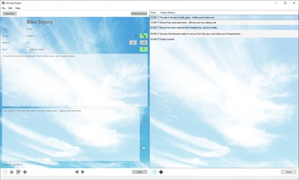 JXCirrus Prayer is a prayer journal that lets you easily jot down prayers by yourself or in a group. The app then selects prayers for you to pray each day, and lets add updates to prayers.