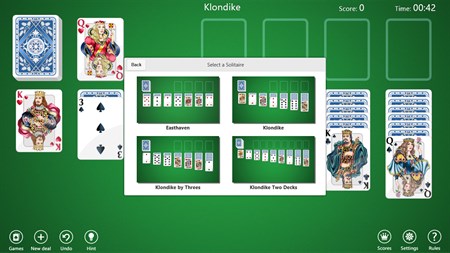 Play a free beautiful collection of Klondike solitaire game variations, including: - Klondike - Klondike by Threes - Klondike Two Decks - Easthaven