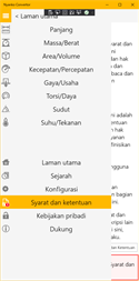 Memperbaiki bug. (11 September 2019) Memperbaiki bug. (28 Agustus 2019) Memperbaiki beberapa bug. (12 Agustus 2019) Menambahkan bahasa Prancis (fr). (8 Agustus 2019) Menambahkan bahasa Korea (ko). (22 Juni 2019) Menambahkan "Fathom" ke kategori panjang. (5 Juni 2019) Menambahkan "skala Rankine" ke kategori suhu.