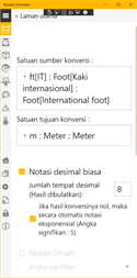 Konversi unit universal. Satuan berat dan ukuran konversi. Konversi sistem satuan internasional (satuan SI). Konversi satuan Inggris. Konversi metrik. Konversi satuan adat Amerika Serikat. Konversi satuan ukuran China. Notasi desimal biasa dan Notasi ilmiah dapat dipilih secara sewenang-wenang.