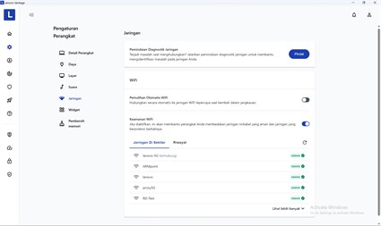 . Menyesuaikan PC dengan cara menggunakan kontrol pengaturan perangkat keras . Memeriksa garansi, menemukan pembaruan terkini, dan meminta dukungan . Menginstal pembaruan perangkat lunak penting dan mendapatkan driver terbaru . Menjalankan diagnostik perangkat . Vantage Smart Performance memungkinkan Anda menjalankan pemindaian untuk menilai performa PC secara keseluruhan dan mengidentifikasi masalah yang dapat diperbaiki dengan cepat agar perangkat Anda berjalan lebih lancar. . Lenovo Identity Advisor memantau lebih dari 120 titik data di web gelap untuk berbagai informasi pribadi. Termasuk: pemberitahuan pelanggaran data, pengambilalihan rekening bank, pembekuan kredit dan rekening, pemantauan pengambilalihan telepon, verifikasi perubahan alamat USPS, pemindaian catatan pengadilan, dan laporan pendaftaran pelanggar seks. . Akses keamanan Wi-Fi online dengan algoritma canggih dan data keamanan dari banyak sumber agar Anda bisa mendapatkan peringatan dini tentang jaringan berisiko, sehingga Anda dapat membuat koneksi yang aman. . Lenovo Smart Lock, didukung oleh Absolute®, adalah solusi keamanan berbasis cloud yang membantu menemukan, mengunci, mengamankan, dan memulihkan perangkat Anda yang dicuri serta memberi Anda kendali penuh atas informasi pribadi Anda