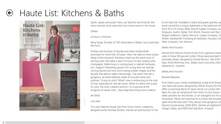 The Interiors magazine app offers a luxury home design resources for both the design conscious reader and the industry professional. With interactive page flipping, a zoom feature, bookmarking, searching and sharing your favorite articles allow an enhanced magazine experience right anywhere and anytime you choose to read.