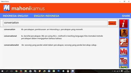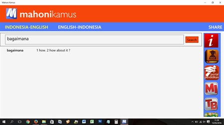 Penggunaan Mahoni Kamus ini memungkinkan penggunanya untuk menterjemahkan setiap tugas kantor atau sekolah atau untuk kepentingan apapun yang terkait dengan bahasa Indonesia ke Bahasa Inggris atau sebaliknya. Dengan mengunduh Mahoni Kamus di perangkat Windows anda, akan sangat memungkinkan proses terjemahan di mana saja dan kapan saja