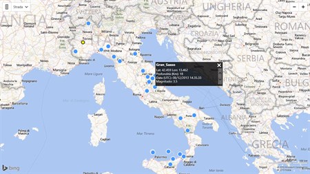 Questa applicazione permette il monitoraggio degli eventi sismici della penisola italiana.