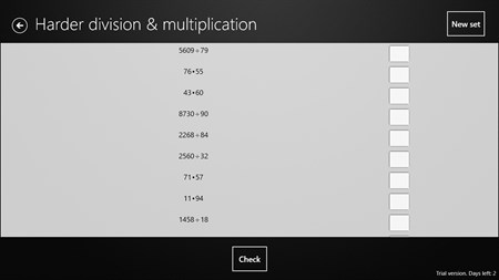 This application will help you to improve your math skills. Arithmetic, linear and quadratic equations, exponents, fractions, both simple and hard level exercises. Addition, subtraction, multiplication, division, decimals worksheets. Least common multiple, greatest common divisor, division with remainder.