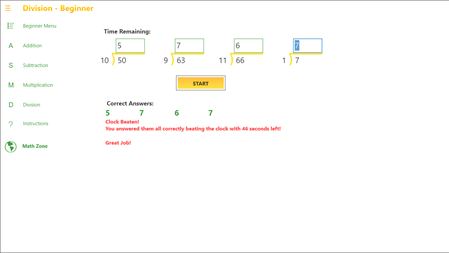 Math Speed is a basic math app that gives the player a set amount of time to solve four random problems. It has a beginners area and an area for ages 6 and up. The area for ages 6 and up has 3 levels of difficulty, Easy through Hard, in each math area of Addition, Subtraction, Multiplication and Division. The area for beginners has 1 level each in Addition, Subtraction, Multiplication and Division until they are ready to move on. Basic arithmetic is the foundation of all math problems. You have to be good and fast too in order to succeed in complex math equations. Why not make it fun and sharpen your memory at the same time?
