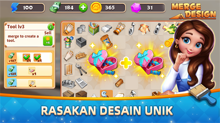 Merge Design yang diterbitkan bersama oleh MIRACLE GAMES INC, adalah game desain dekorasi yang sangat menyenangkan, yang menggabungkan gameplay sintesis dan eliminasi klasik. Ini juga memberi pemain banyak adegan rumah yang berbeda, Anda dapat membeli semua jenis barang furnitur sesuka Anda, dan mendesain rumah impian Anda. Pilih dari berbagai gaya dan desain, pilih gaya klasik, gaya modern, atau ciptakan gaya eksklusif Anda sendiri. Desain wallpaper, lantai, sofa, meja kopi, dll di rumah terserah Anda.