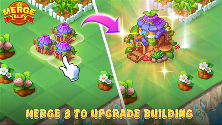 In the game, there are many strange flowers and plants, old and old books, buildings with different styles, and musical instruments that emit beautiful strings, all of which can be obtained by using merge magic (the items may be sleeping fairy tale characters). Drag and drop and combine three or more items to bring surprises, such as candy falling from the tree, various ingredients gushing out of the wheat field, and heroes from the storybook appearing! Merge combs to summon Rapunzel, or use the watering can to find Thumbelina. Wooden huts can be upgraded into cozy cottages or even castles for nobles.