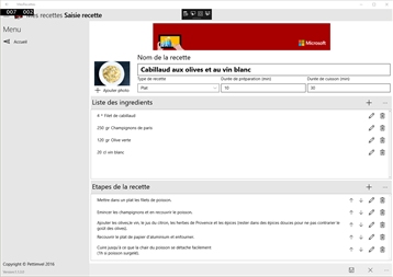 La application MesRecettes permet d'établir un carnet de recette détaillé.