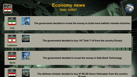 Key Features * Forge alliances and wage wars. * Utilize weapon suppliers (USA, EU, Russia, and China). * Establish a Spy Center and War Room. * Stay informed with World News (Economy, Relations, Spy, and War). * Engage with challenging Artificial Intelligence opponents.