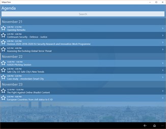 Milipol Paris 2017 is pleased to provide the visitors and exhibitors with this mobile app, designed to facilitate your visit and give you access to a large range of information at any time: • Exhibitor list with information for each company. • Conference programme with the biography of each speaker. • Agenda of the events organised during the Exhibition. • Practical information and the list of on-site services (catering, transportation, etc.). • Interactive map of the Show (2D/3D) with the route marking feature.