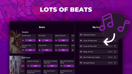 Record your rap with Mixtape recorder! Choose from lots of beats from various genres and start recording. Apply auto-tune and other effects to make the sound even cooler.