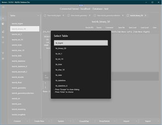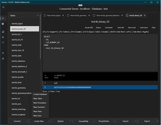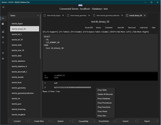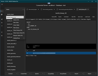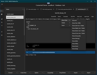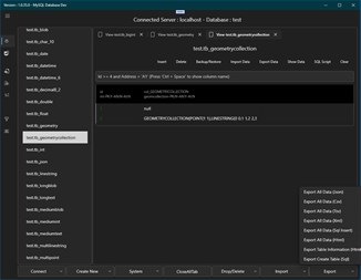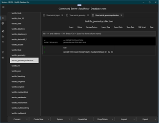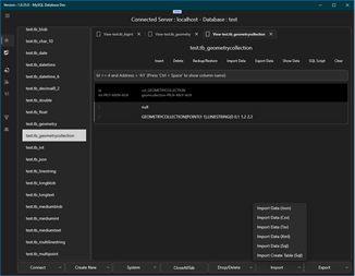 MySQL Database Import csv, json, sql Export csv, json, sql Show data table