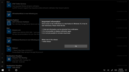 Since access to the notifications is a new feature in Windows 10, it has its own restrictions. Please check the list: