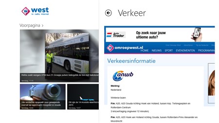 Download gratis de Windows 8-app van Omroep West en blijf altijd op de hoogte van nieuws, sport en evenementen uit het noorden van Zuid Holland. (regio Den Haag, Leiden, Gouda, Delft, Westland, Alphen aan den Rijn, Zoetermeer)