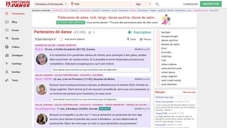 Trouvez des partenaires de danse à deux (salsa, bachata, tango, danses de salon...) près de chez vous, pour aller en soirée dansante ou en cours de danse.