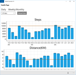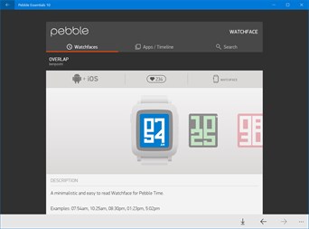 - Receive notifications on your Pebble watch (Supported from Windows 10 Anniversary Version and above) - Monitor your daily, weekly and monthly activities through Health page (Only for Pebble Time and Pebble Time Round) - Auto-Sync calendar details into Pebble's TimeLine - Customise some of the Pebble Apps through the settings page. This is only a proof of concept feature. It does not work for all apps. - Control music from your Pebble even when the app is in the background. - Control the volume of the music directly from your Pebble. - Install apps/watchfaces directly from Pebble App store. - Pebble App store functionality includes easy switch between Apps, watchfaces and search for apps. - This app gives an easy switch between different paired Pebbles.