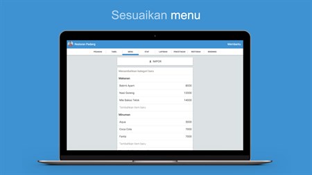 ► LAPORAN UNTUK MENCAPAI KESEMPURNAAN Periksa pendapatan dari hari / minggu / bulan. Temukan hidangan yang melakukan besar dan mana yang harus dihapus dari menu. ► TABLET AT TABLE Anda dapat meninggalkan sebuah tablet di meja pelanggan. Para pelanggan akan dapat membaca menu dan memesan makanan mereka langsung dari tablet.