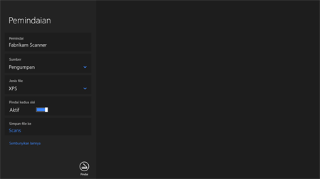 Jika Anda memiliki pemindai, aplikasi ini akan memudahkan pemindaian dokumen dan gambar serta penyimpanannya di lokasi yang Anda inginkan. Aplikasi Pemindaian adalah bantuan yang sempurna untuk memindai foto dari flatbed atau memindai beberapa halaman dari feeder dokumen.