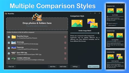 You could buy a bigger disk, buy more cloud storage, or spend hours/days/years going through the photos yourself, or you could use PhotoFiles Lite to recover that precious disk space today. Built from the ground up exclusively for Windows 10 & 11 using the latest technologies from Microsoft.