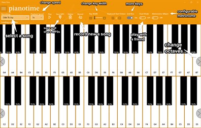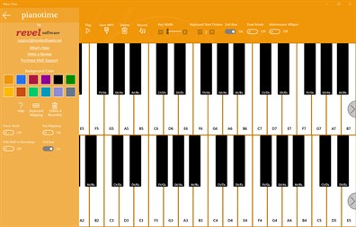 Piano Time is a multitouch piano with 36 visible keys and selectable octaves. You can personalize the look of the app, configure the metronome, learn to play the piano or practice your skills, as well as record and playback unlimited songs. Piano Time supports multitouch screen, keyboard, mouse, and midi contoller input. Now you can save and share recordings as MP3s and select from different keyboard mapping options! A world of musical entertainment is literally at your fingertips.