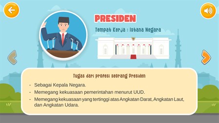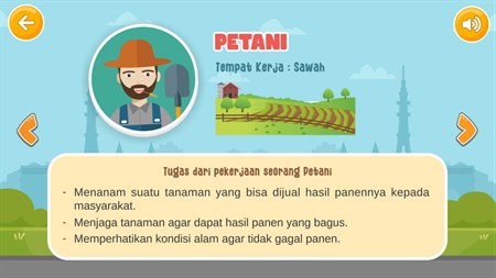 Profesi & Pekerjaan - Belajar Mengenal Profesi & Pekerjaan | Aplikasi belajar mengenal Profesi & Pekerjaan adalah game edukasi yang berisi pengenalan berbagai macam profesi dan pekerjaan, dalam aplikasi terdapat juga permainan puzzle agar lebih menarik untuk anak-anak. Terdapat 20 profesi yang dikenalkan dalam aplikasi ini.